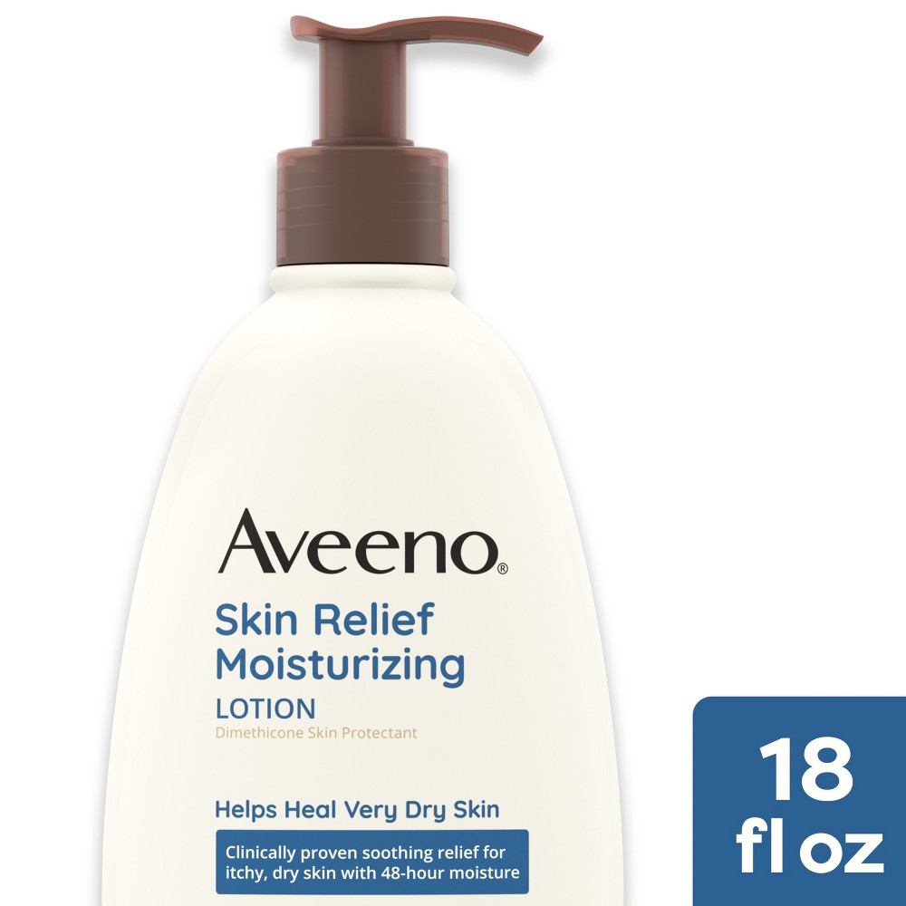 Aveeno Skin Relief Fragrance-Free Moisturizing Body Lotion is a rich, yet fast-absorbing lotion that helps heal and relieve very dry skin. Gentle enough for sensitive skin, the nourishing daily body lotion provides clinically proven soothing relief for itchy, dry skin with 48-hour moisture. This dimethicone skin protectant features a soothing Triple Oat and hydrating natural shea butter formula which includes oat flour, oat extract and oat oil that provides soothing relief for itchy, dry skin and locks in long-lasting moisture. Our fast-absorbing lotion is allergy tested and is free of fragrances, parabens and dyes. Experience all-day moisture and help heal very dry skin with this non-greasy, non-comedogenic body moisturizer, from the dermatologist-recommended skincare brand for over 70 years.