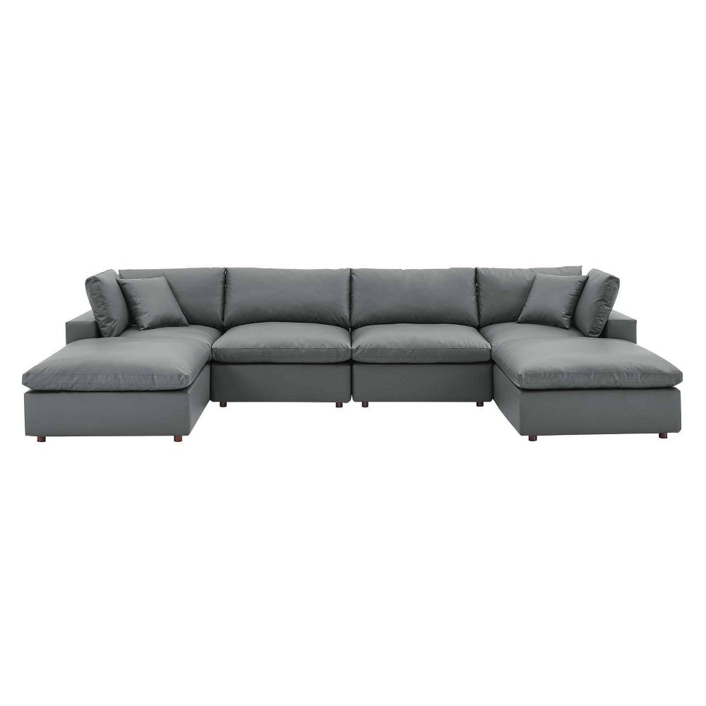 6pc Commix Down Filled Overstuffed Vegan Leather U-Shaped Sectional Sofa Set Gray - Modway