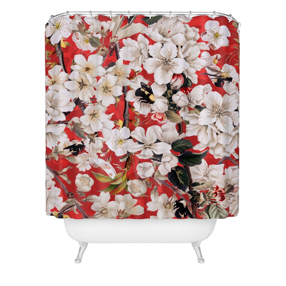 Set the stage. The Deny Designs shower curtain is crafted from 100% woven polyester and makes the perfect backdrop for whatever your bathroom decor may be. Adding some design to your shower curtains is a great way to make a statement in a room known for presenting plenty of design challenges. The buttonhole openings along the top means that you're free to use any curtain rings or hooks you please. And the best part? Every purchase pays the artist who designed it—supporting creativity worldwide