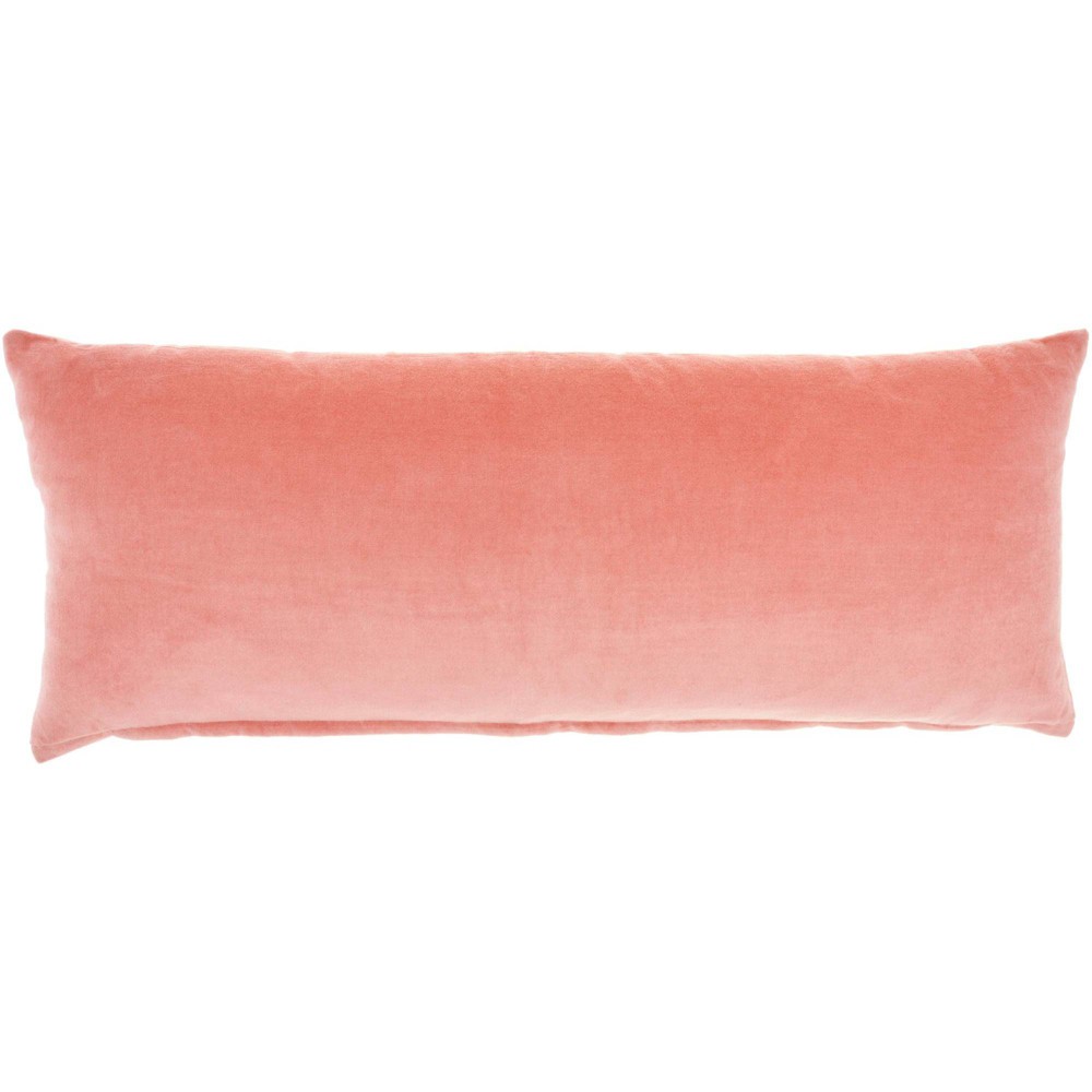 For an instant touch of personality, try putting this Mina Victory oversized lumbar throw pillow on your bed or sofa! You'll love the soft feel of velvet at your back while you lounge in your living room or bedroom. A blush pink front cover with white cotton back adds contrast to this visually appealing, 12" x 30" solid throw pillow. Available in a variety of colors and sizes that you can mix and match as you please.