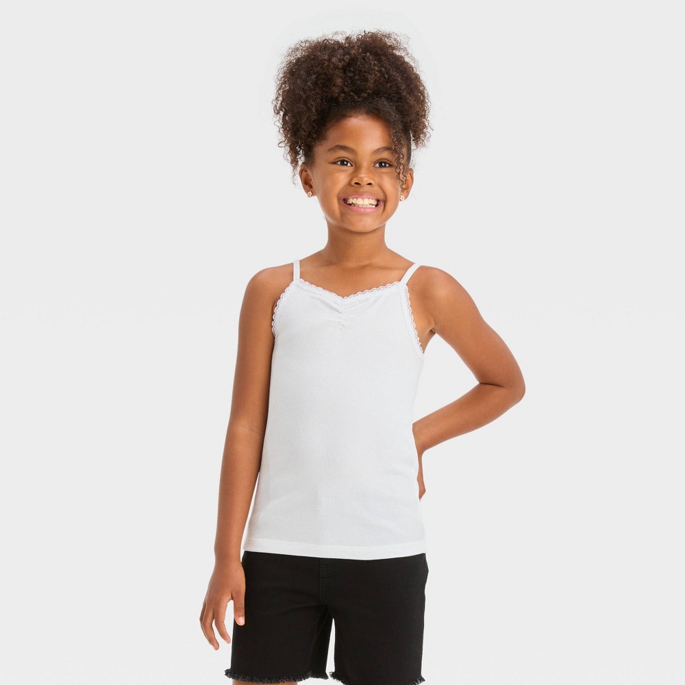 Girls' Lace Trim Cami Tank Top - Cat & Jack™ White XS