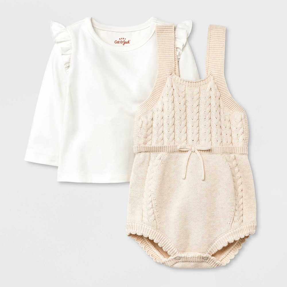 Baby Girls' Sweater Romper with Cable T-Shirt Set - Cat & Jack™ Cream 24M