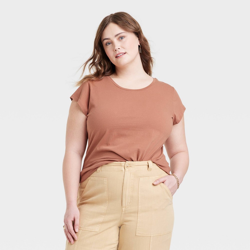 Women's Fitted Short Sleeve T-Shirt - Universal Thread™ Brown XXL