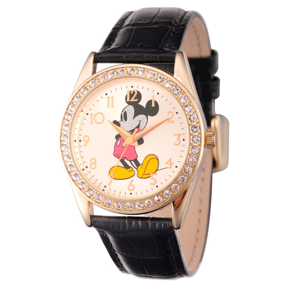 Men's Disney Mickey Mouse Gold Alloy Glitz Watch - Black