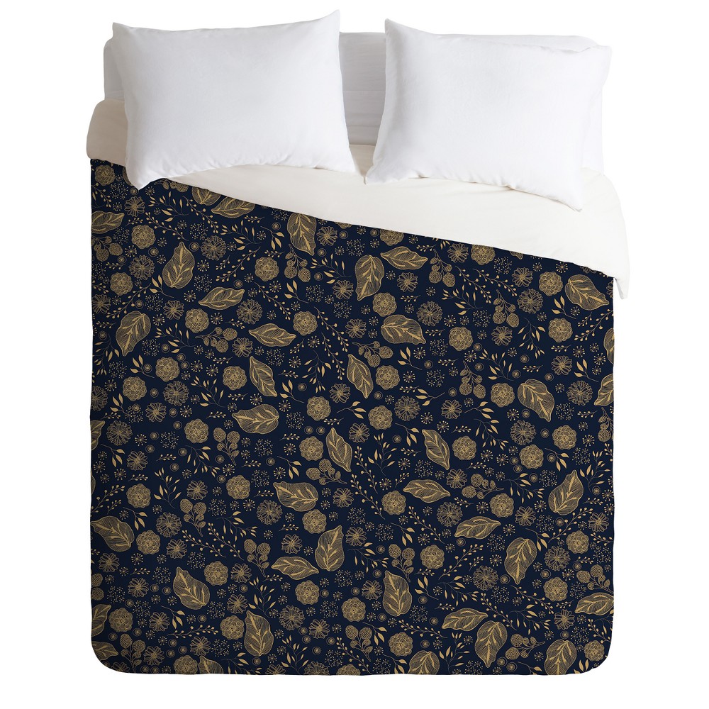 Navy Floral Iveta Abolina Crystalline Water Duvet Cover (Twin) - Deny Designs