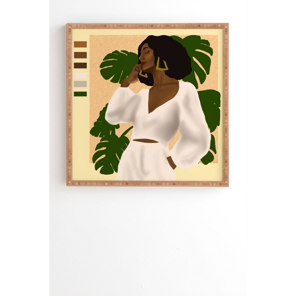 30" x 30" Nawaalillustrations Girl in White Framed Wall Art Bamboo - Deny Designs