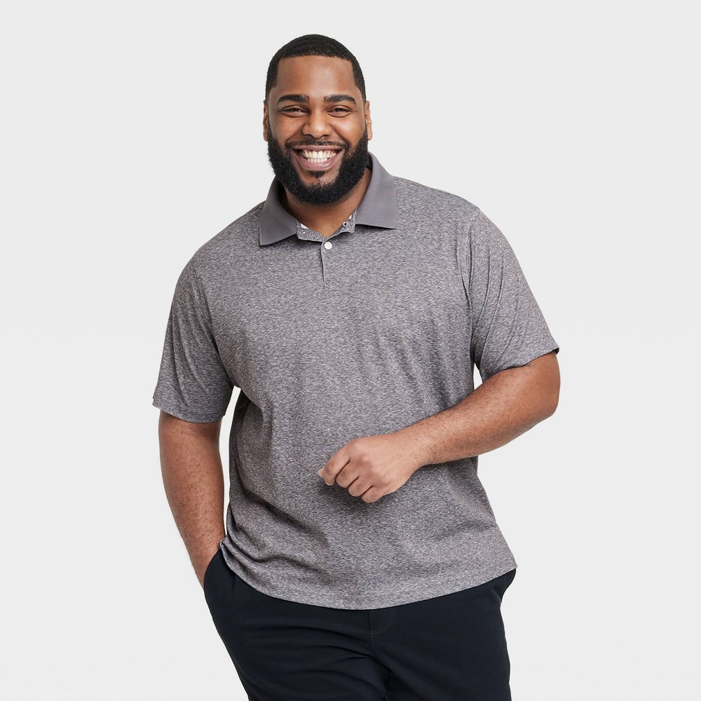 Men's Big & Tall Regular Fit Short Sleeve Performance Polo Shirt - Goodfellow & Co™ Heathered Black 5XLT