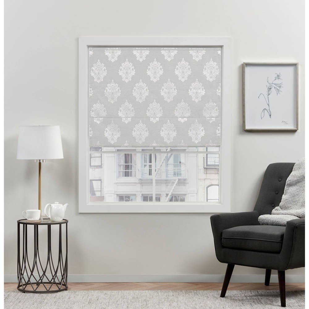64"x23" Marseilles Damask Blackout Roman Curtain Shades Silver - Exclusive Home